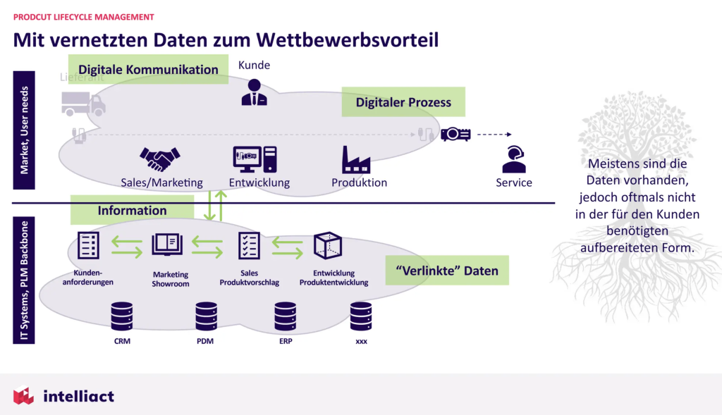 At this level, different companies in the organization or external partners and customers are also included. The focus here is, for example, on how product data supports the sales process and how this can be digitalized with suitable solutions in order to meet the specific requirements of customers.